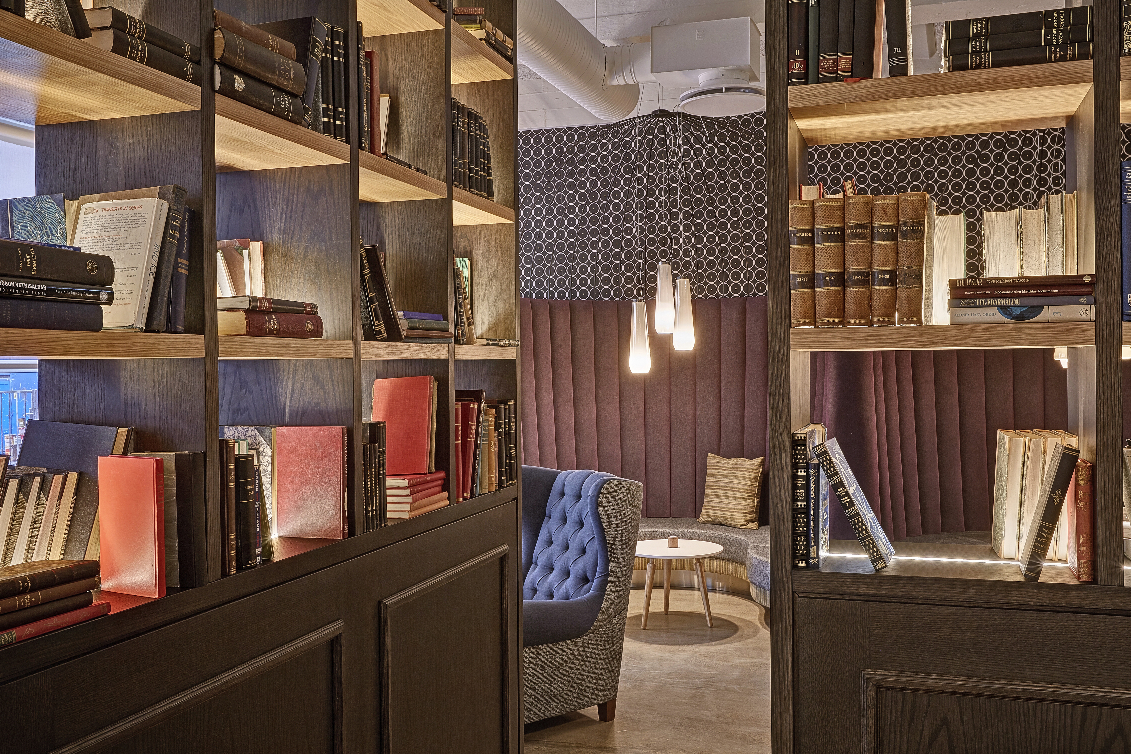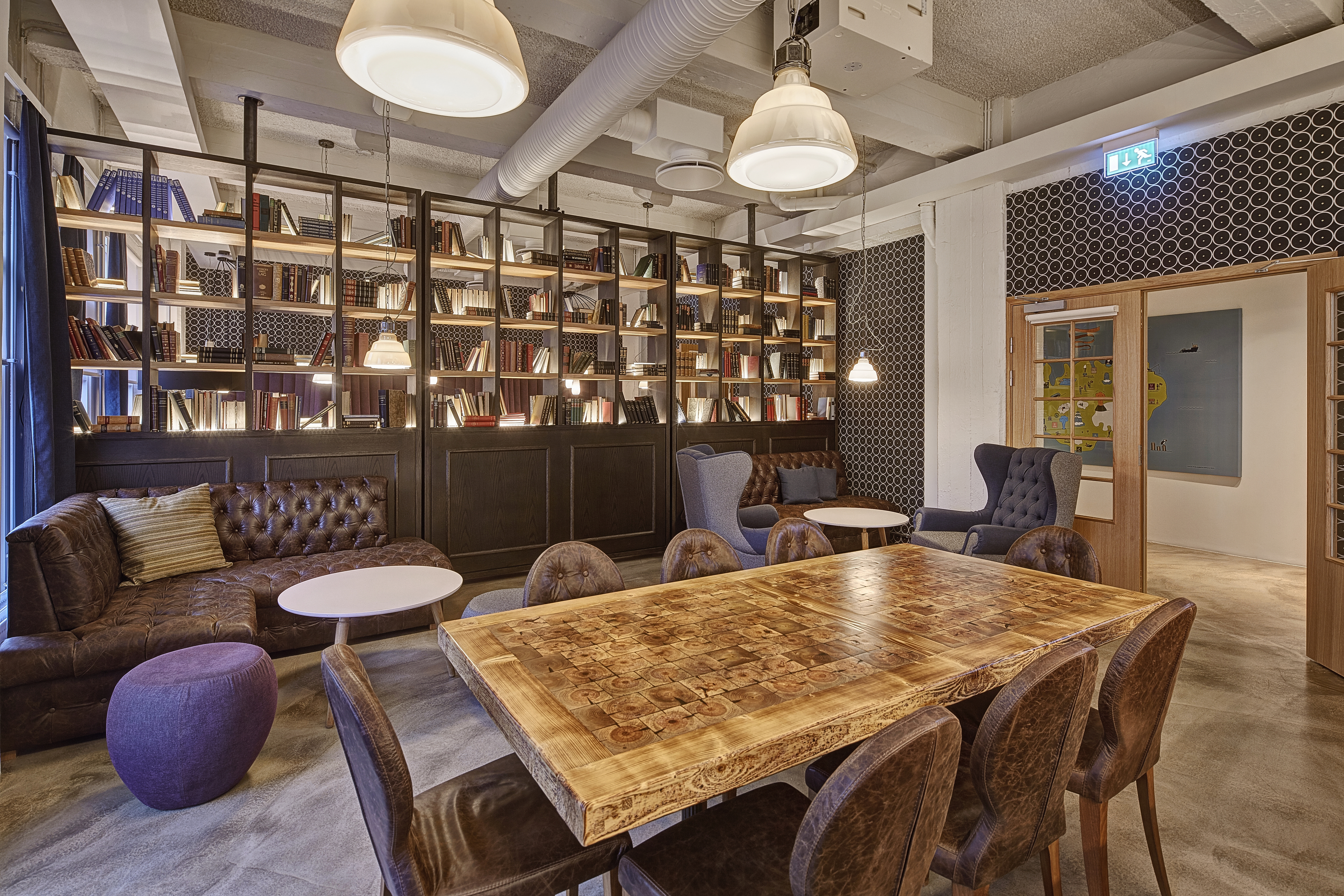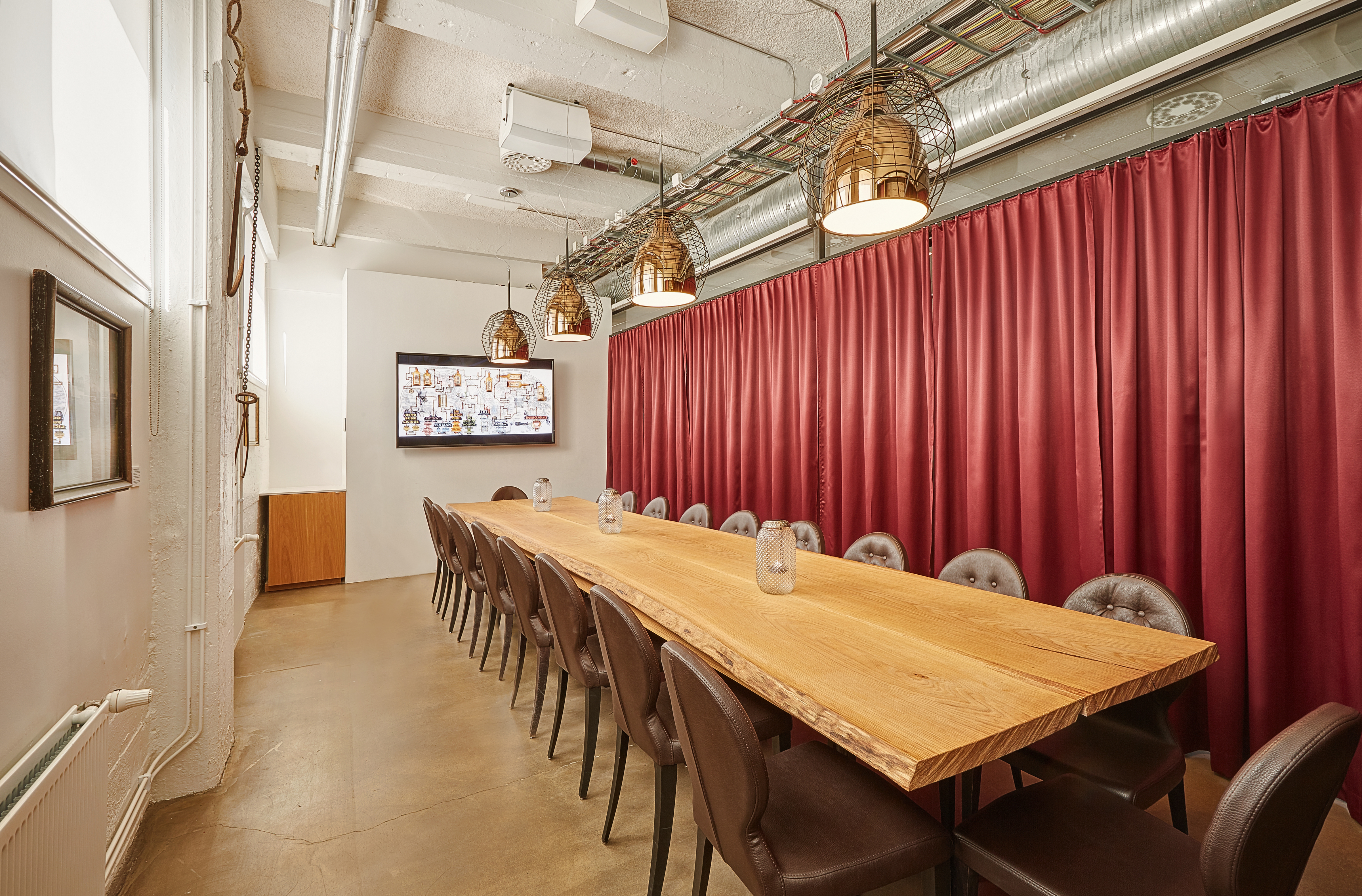 The Lounge is an unconventional meeting space with boardroom seating for 8 people. It can be split up in two areas by a turning bookshelf. The venue is ideal for pre-dinner drinks or cocktail receptions for up to 70 guests.