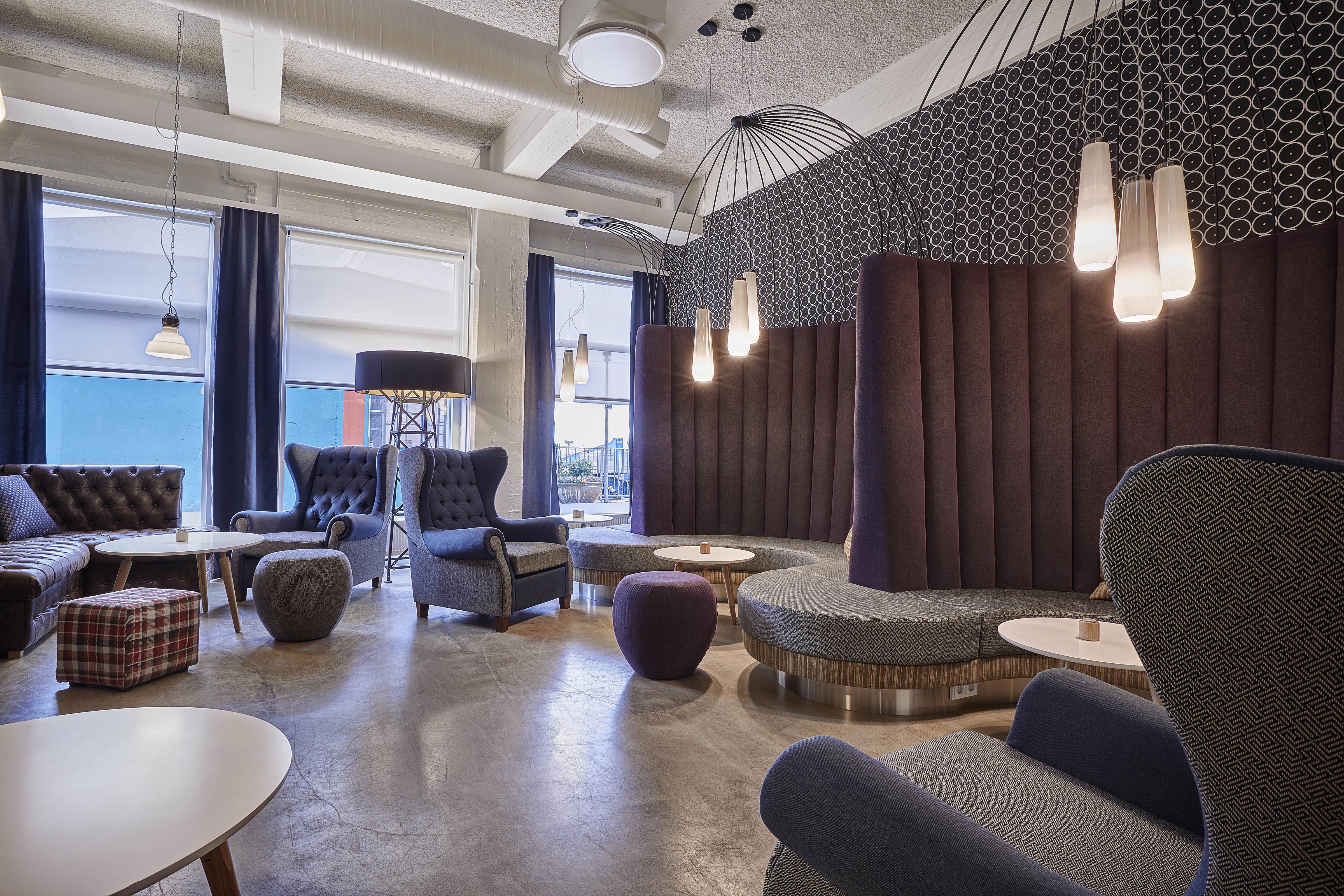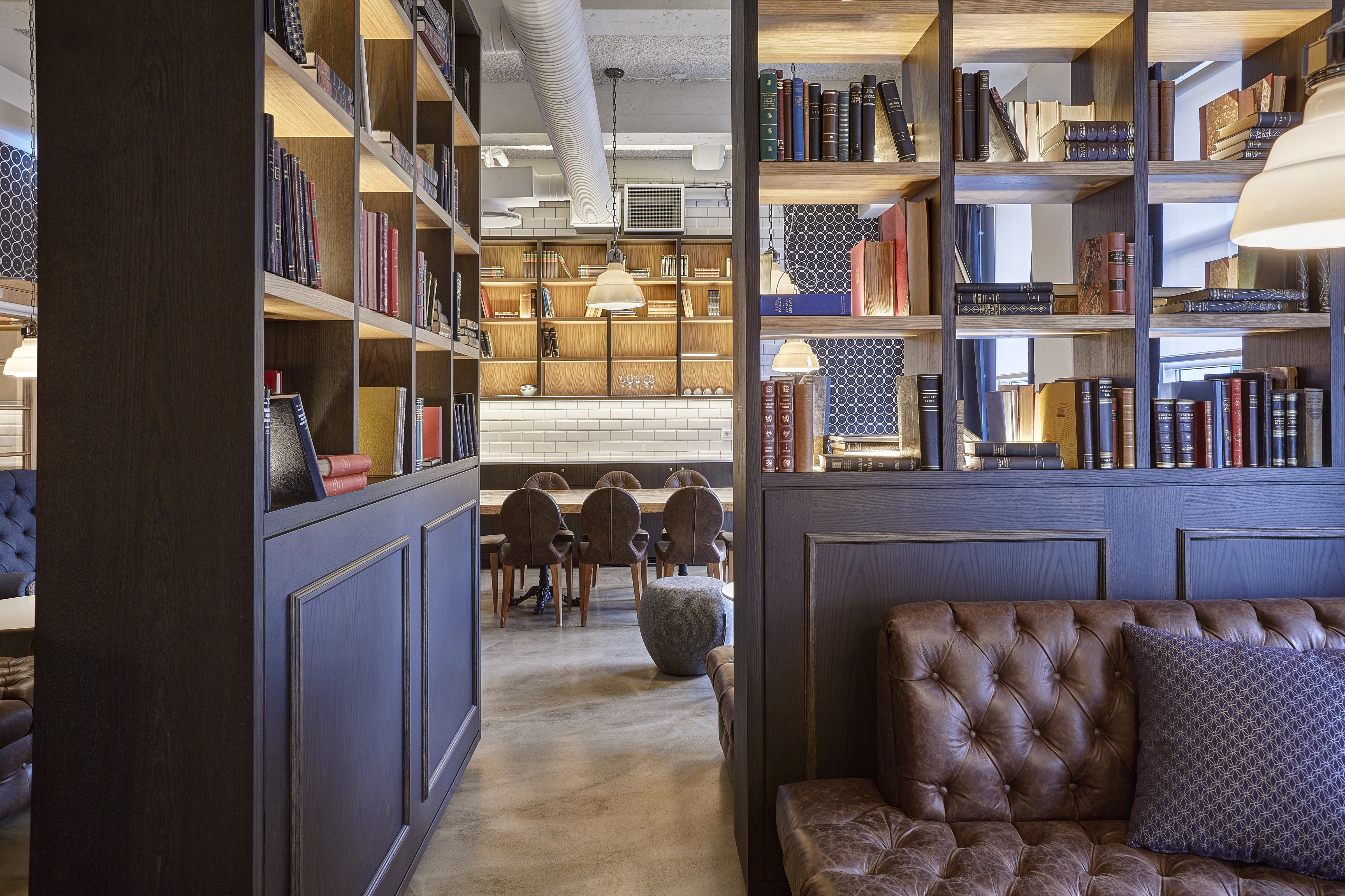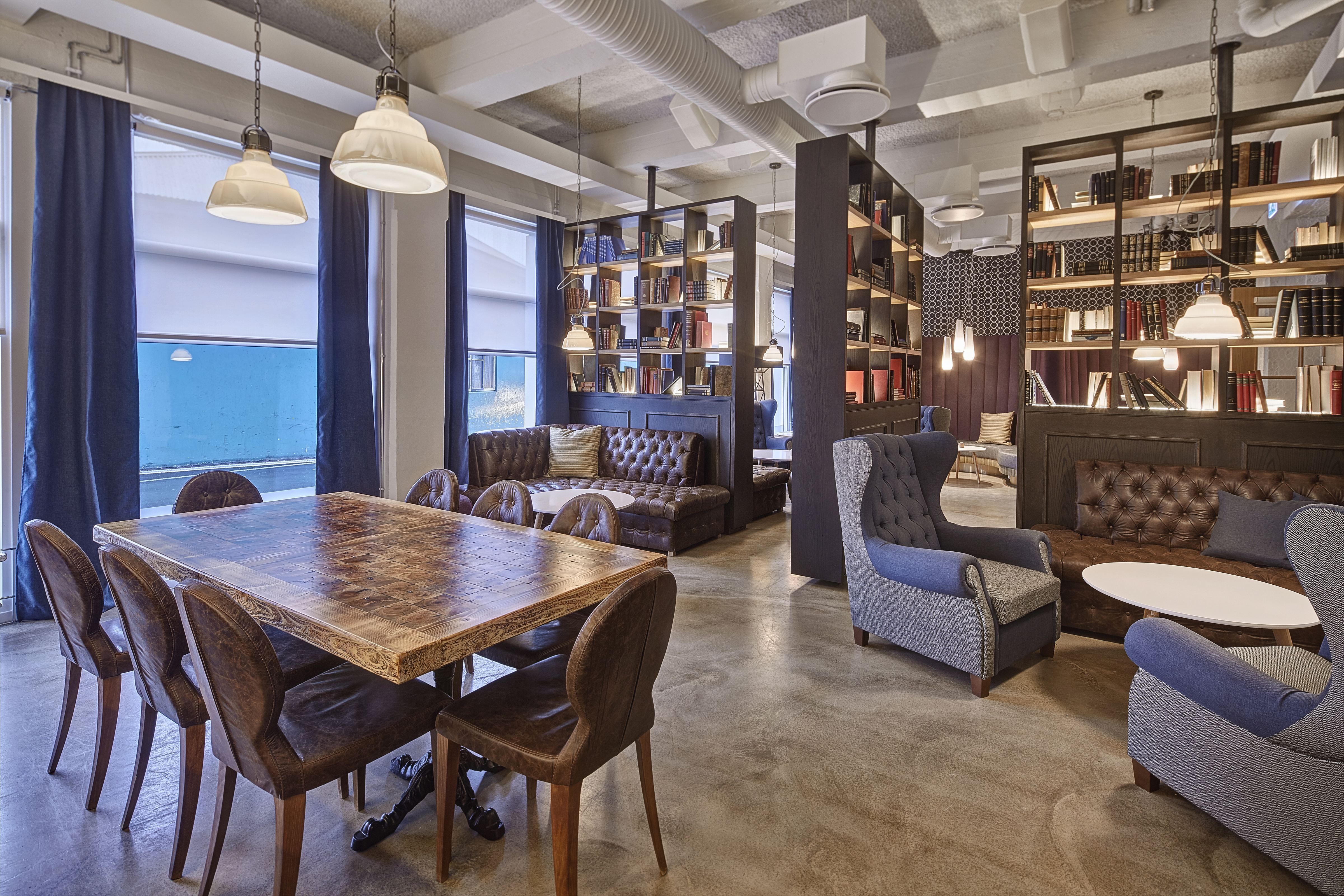 The Lounge is an unconventional meeting space with boardroom seating for 8 people. It can be split up in two areas by a turning bookshelf. The venue is ideal for pre-dinner drinks or cocktail receptions for up to 70 guests.