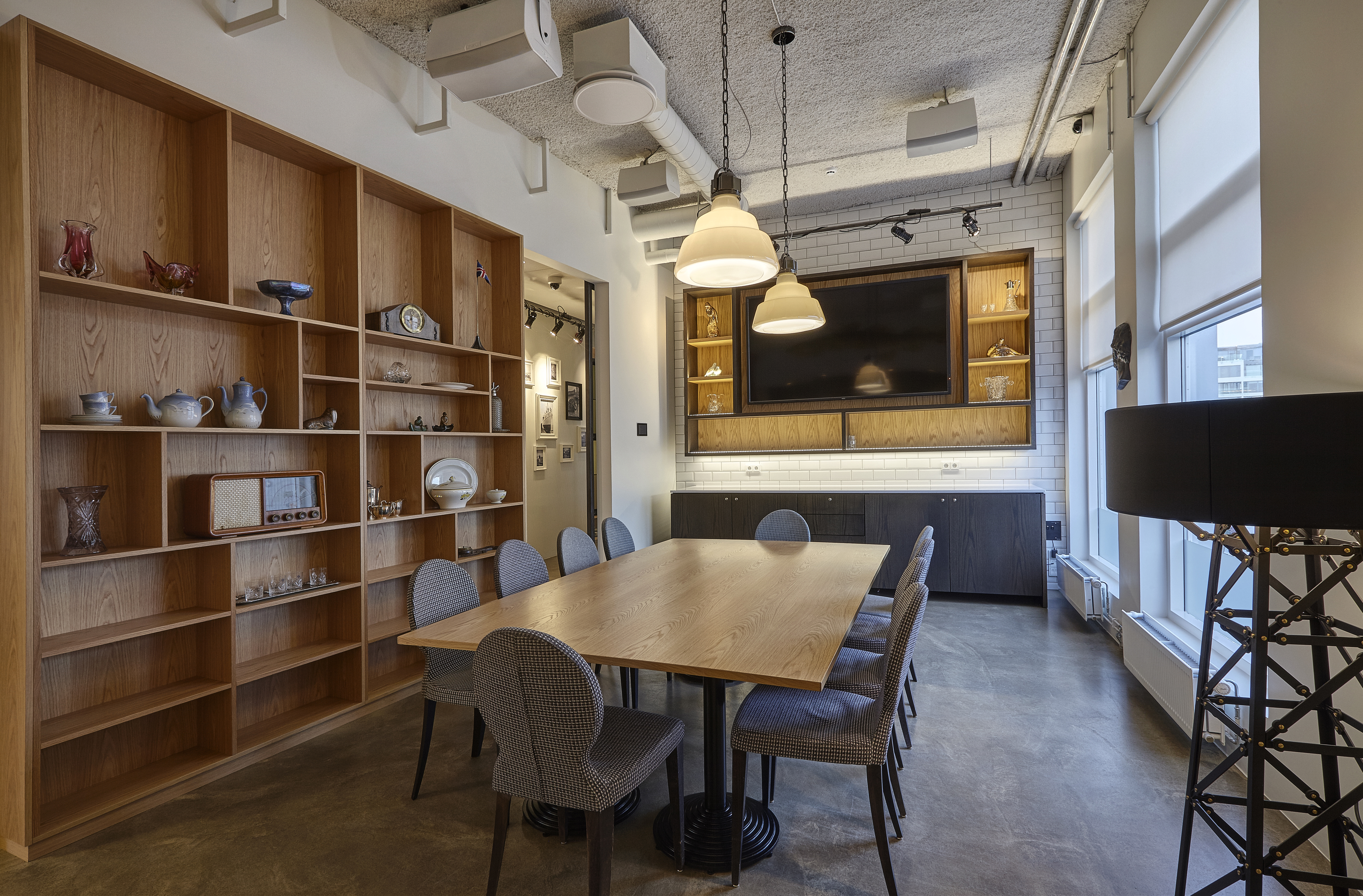 Spacious and bright room with a beautiful fireplace and a small stage giving multiple options for various meetings and events for up to 40 people.This open space is ideal for workshops, meetings, lectures, cocktails, and light lunches.