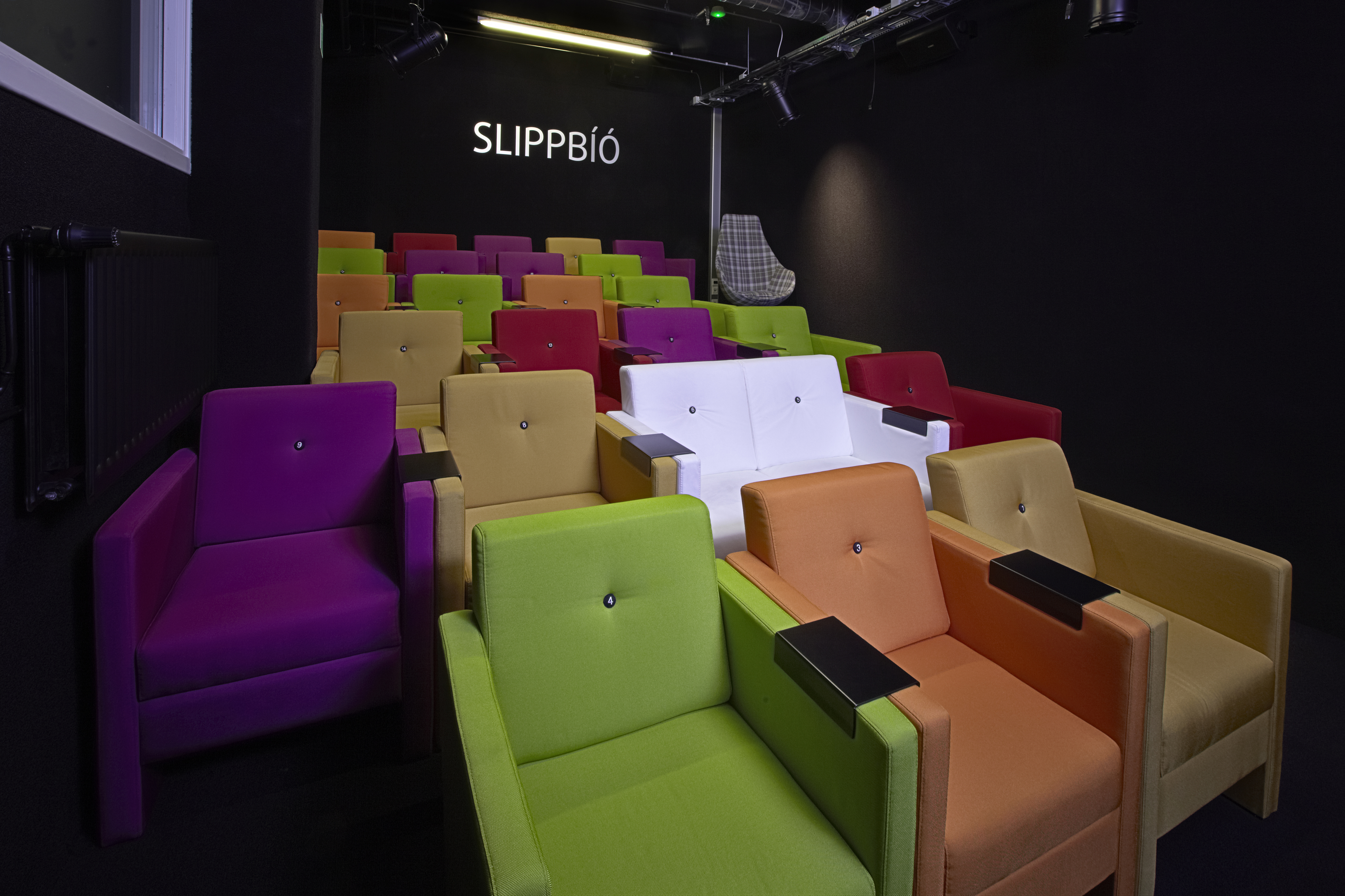 Our ever so popular Slippbíó triples as movie theatre, lecture or presentation hall, seating 26 people. Slippbíó includes a projector, full sound system, a screen and cable to connect your device.