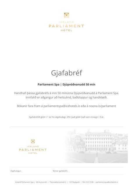 Handhafi þessa gjafabréfs á inni 50 mínútna Djúpvöðvanudd á Parliament Spa.