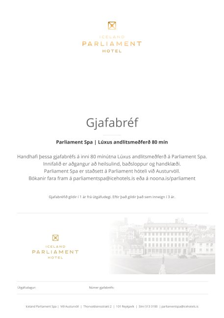 Handhafi þessa gjafabréfs á inni 80 mínútna Lúxus andlitsmeðferð á Parliament Spa.