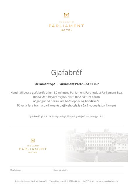 Bókanir fara fram á parliamentspa@icehotels.is eða á noona.is/parliament